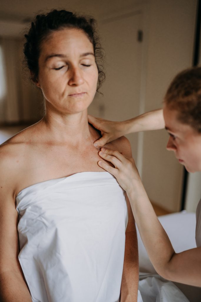 Der Atem sollte während der gesamten Behandlung bewusst und tief sein. Der Patient wird von mir angeleitet, langsam und tief ein- und auszuatmen. Dies hilft dabei, eine entspannte Atmosphäre zu schaffen und den Erfolg der Behandlung zu maximieren.